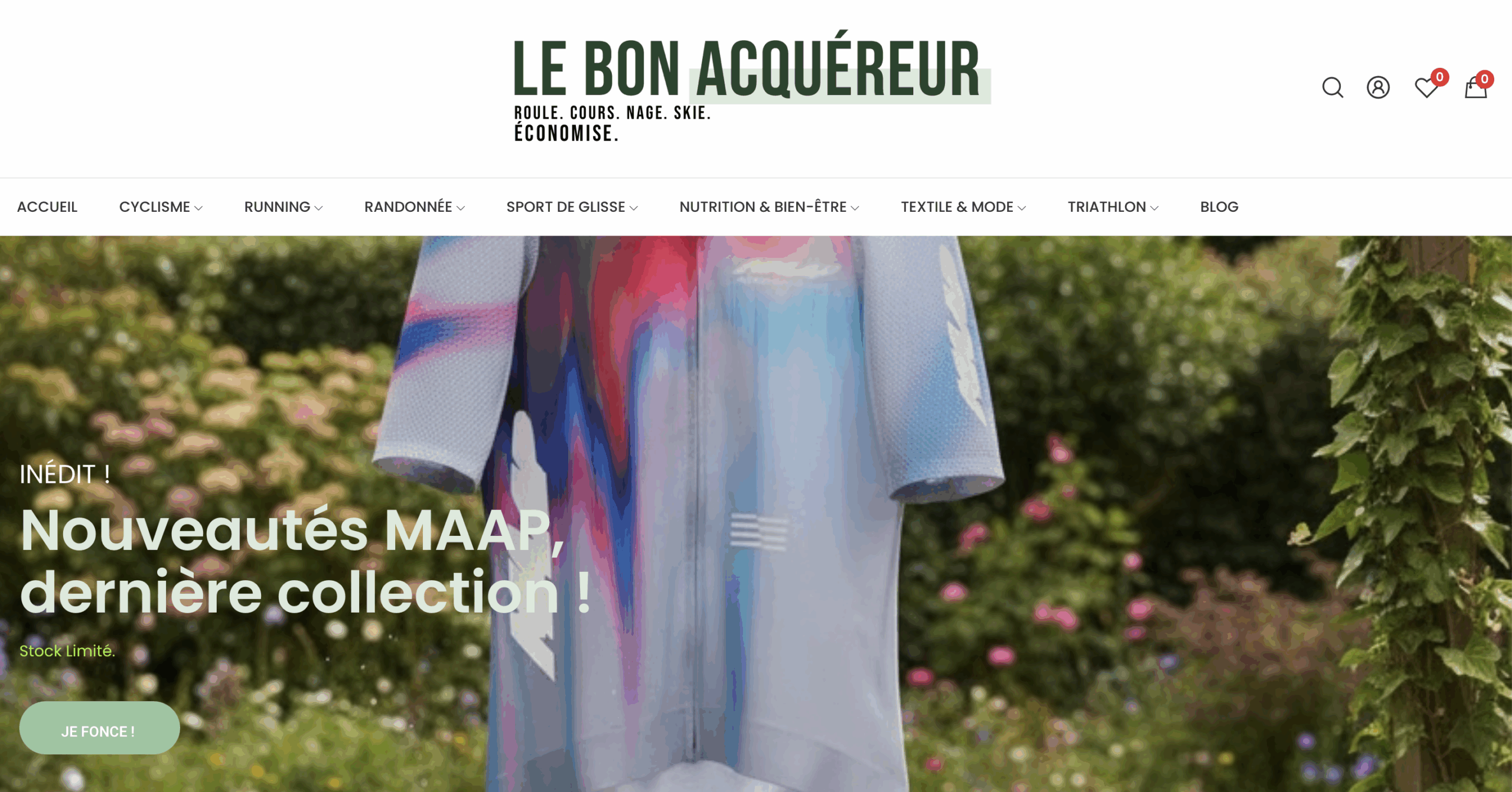 Le Bon Acquéreur c’est un site web de vente d’articles de sport outdoor à prix cassé (équipements et matériel) principalement cyclisme et running.