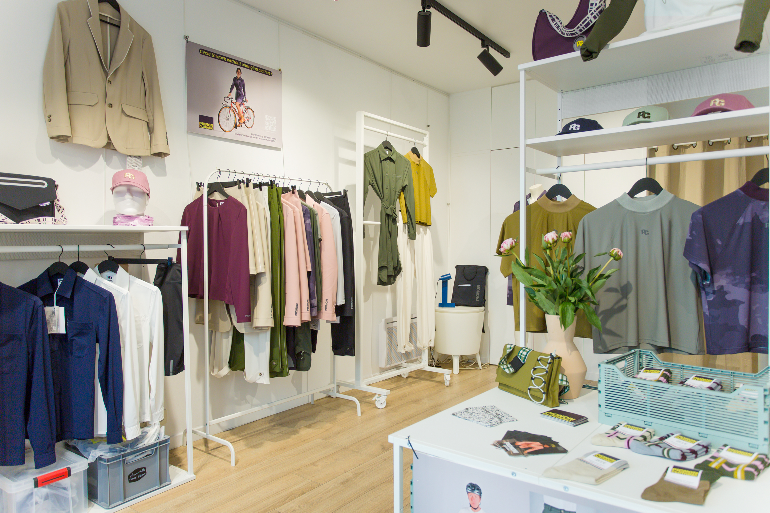 PIGNON propose des vêtements qui combinent mode et fonctionnalités techniques. conçus pour le cyclisme, et pour une utilisation quotidienne, que ce soit au travail ou pour des sorties. Pas besoin de se changer à l’arrivée au bureau.